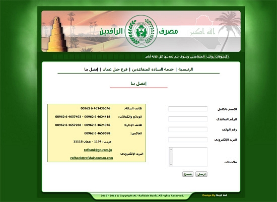 Rafidain Bank - Jordan Start the bank with a paid-up capital in 1957, the amount of fifty thousand dinars, and then capital was increased on successive periods as instructed by the Central Bank of Jordan and became a registered capital paid twenty million Jordanian dinars in 2010 |